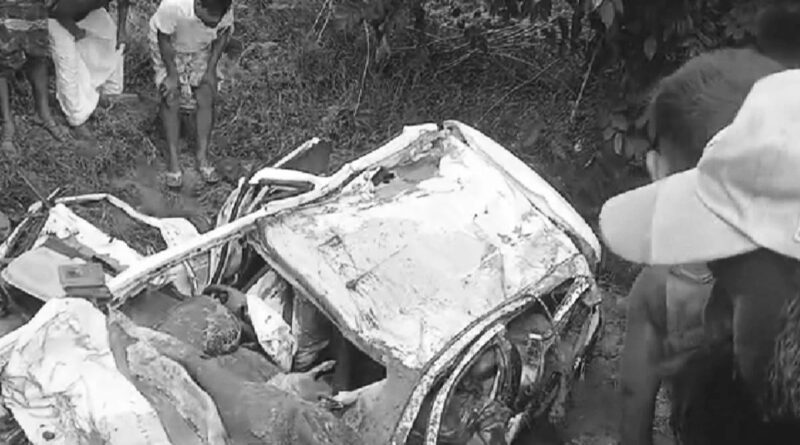 तेज रफ्तार में अनियंत्रित कार गड्ढे में जा गिरी, गाड़ी में सवार सभी लोगों की मौ’त..