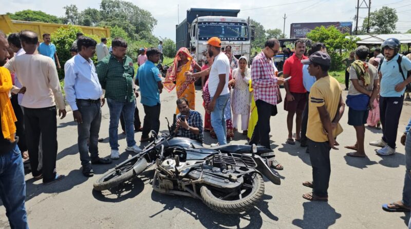 तेज रफ़्तार ट्रक की चपेट में आने से बाइक सवार की मौत,लोगों ने किया सड़क जाम