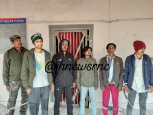 गिरफ्तार अभियुक्त में हिमांशु यादव उर्फ लालू यादव- पिता बिक्रम यादव,अनिकेत पाठक, उम्र 20 वर्ष, पिता स्व. शंकर पाठक,निहाल पांडेय, उम्र करीब 26 वर्ष, पिता स्व. मनोज पांडेय,नीरज कुमार, उम्र करीब 20 वर्ष, पिता राम बचन यादव और राहुल बड़ाईक, उम्र करीब 20 वर्ष, पिता शंकर बडाईक शामिल है।गिरफ्तार आरोपी के पास से एक देसी पिस्तौल जिसमें Made in USA लिखा हुआ। 03 जिन्दा गोली,34 पुड़िया ब्राउन शुगर (वजन पुडिया सहित 04.00 ग्राम),मोबाईल फोन-04,नगद 40,000/ रुपये,एक स्कूटी रजि०-JH01CN-3023 और एक बुलेट Jh01GH-6002 बरामद किया गया है।