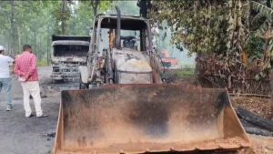 अपराधियों ने मचाया तांडव, जेसीबी और हाइवा समेत कई गाड़ियों को किया आग के हवाले,जांच में जुटी है पुलिस