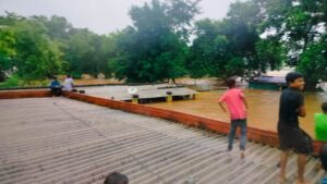जमशेदपुर।झारखण्ड पूर्वी सिंहभूम जिले बारिश ने जनजीवन अस्त व्यस्त कर दिया है।जिले में भी भारी बारिश हो रही है।बारिश के कारण पोटका के कोवाली थाना क्षेत्र के हरिणा स्थित गुदरा नदी का जलस्तर बढ़ गया है।नदी का पानी घरों व आसपास के इलाकों में घुसने लगा है।शनिवार की रात नदी के पास स्थित लव कुश आवासीय विद्यालय में भी पानी घुस गया। उस समय बच्चे स्कूल के छात्रावास में सो रहे थे।