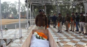 गुरुवार (1 जनवरी 2026) को फूलो झानो मेडिकल कॉलेज अस्पताल (PJMCH) में पोस्टमार्टम के बाद दिवंगत एसआई हेमंत भगत के पार्थिव शरीर को दुमका पुलिस लाइन लाया गया। वहां उन्हें पूरे सम्मान और शोक सलामी के साथ अंतिम विदाई दी गई। वातावरण गम और सन्नाटे से भरा रहा।इस अवसर पर पुलिस अधीक्षक पीतांबर सिंह खेरवार, एसडीपीओ विजय कुमार, डीएसपी मुख्यालय इकुड डुंगडुंग, पुलिस एसोसिएशन एवं पुलिस मेंस एसोसिएशन के पदाधिकारी समेत बड़ी संख्या में पुलिस अधिकारी और कर्मी मौजूद रहे।सभी ने पुष्प अर्पित कर अपने साथी को अंतिम नमन किया।