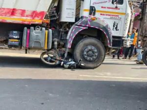 हाइवा की चपेट में आने से बाइक सवार ससुर-दामाद की मौत,हाईवा ने दोनों को 100 मीटर तक घसीटा, पुलिस ने चालक को पकड़ा