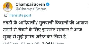 झारखण्ड के पूर्व मुख्यमंत्री चंपाई सोरेन को किया गया हाउस अरेस्ट,रिम्स-2 की जमीन पर चलाने वाले थे हल…