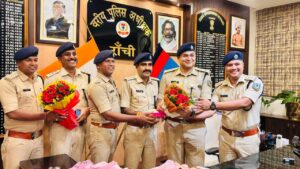 नए एसएसपी का स्वागत करते हुए राँची के कोतवाली डीएसपी, सिटी डीएसपी,सदर डीएसपी,मुख्यालय वन और टू डीएसपी