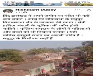 मधुपुर के लालगढ़ में काली मंदिर के जीर्णोद्धार को लेकर उत्पन्न सांप्रदायिक तनाव और हिंसा की घटना पर गोड्डा के सांसद निशिकांत दुबे ने कड़ी प्रतिक्रिया दी है। उन्होंने इस घटना की तीखी आलोचना करते हुए झारखंड सरकार की नीतियों और प्रशासनिक कार्यशैली पर सवाल खड़े किए हैं।