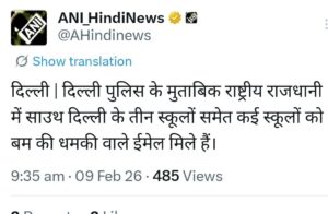 नई दिल्ली। राजधानी दिल्ली में सोमवार सुबह उस वक्त अफरा-तफरी मच गई, जब शहर के अलग-अलग इलाकों में स्थित 9 नामी स्कूलों को बम से उड़ाने की धमकी मिली। यह धमकी भरी कॉल्स सुबह करीब 8:30 से 9:00 बजे के बीच आईं, जिसके बाद स्कूल प्रशासन और सुरक्षा एजेंसियां तुरंत अलर्ट मोड में आ गईं।सूचना मिलते ही संबंधित स्कूलों ने बिना देरी किए दिल्ली पुलिस को मामले की जानकारी दी। इसके बाद पुलिस, फायर ब्रिगेड और बम स्क्वॉड की टीमें मौके पर पहुंचीं और स्कूल परिसरों की गहन तलाशी शुरू की गई।