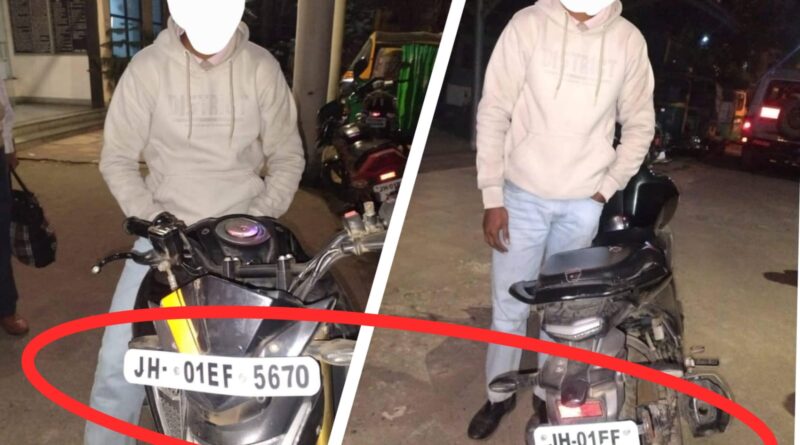 Ranchi:रिश्तेदार की बाइक पर फर्जी नंबर लगा घूम रहा अपराधी गिरफ्तार…