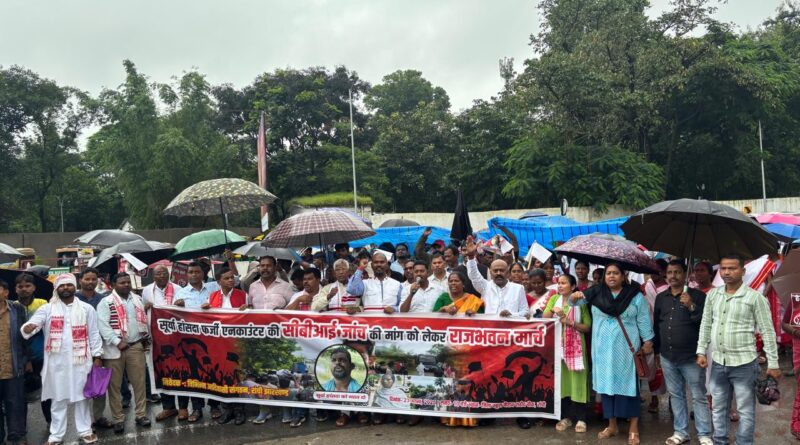 राँची।राजधानी राँची में सूर्या हांसदा के कथित एनकाउंटर को लेकर राजनीतिक और सामाजिक संगठनों का गुस्सा चरम पर है।भारतीय जनता पार्टी (बीजेपी) और झारखण्ड लोकतांत्रिक क्रांतिकारी मोर्चा (जेकेएलएम) सहित कई राजनीतिक दलों ने इसे फर्जी एनकाउंटर और राजनीतिक हत्या करार दिया है।विभिन्न आदिवासी संगठनों ने भी इस मुठभेड़ को सुनियोजित हत्या बताते हुए सीबीआई जांच की मांग की है। आज 23 अगस्त 2025 को राँची के शहीद चौक से राजभवन तक भारी बारिश के बीच निकाले गए आक्रोश मार्च में हजारों लोग शामिल हुए, जिन्होंने दोषी पुलिसकर्मियों पर कठोर कार्रवाई की मांग की।
