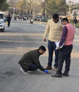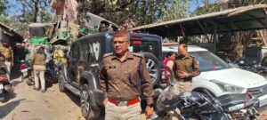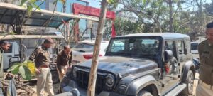 सिटी डीएसपी थार गाड़ी का निरीक्षण करते हुए..