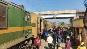 देवघर।झारखण्ड के देवघर जिले के जसीडीह थाना क्षेत्र में रोहिणी नावाडीह रेलवे फाटक पर गुरुवार को एक बड़ा हादसा हुआ। जसीडीह से आसनसोल जा रही गोंडा-आसनसोल पैसेंजर ट्रेन की धान लदे एक ट्रक से सीधी टक्कर हो गई। इस घटना में ट्रक बुरी तरह क्षतिग्रस्त हो गया और दो मोटरसाइकिलें भी उसके नीचे दब गईं। गनीमत रही कि हादसे में कोई हताहत नहीं हुआ और ट्रेन में सवार सभी यात्री सुरक्षित बच गए।